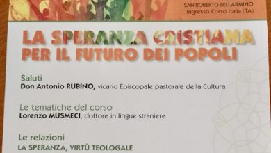 Il prossimo 3 giugno alle ore 18.30, presso l’Auditorium della parrocchia San Roberto Bellarmino a Taranto, si svolgerà il convegno…