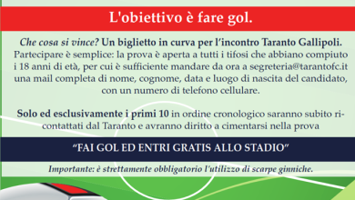 Iniziativa Taranto-Gallipoli: se segni, entri gratis in Curva Nord