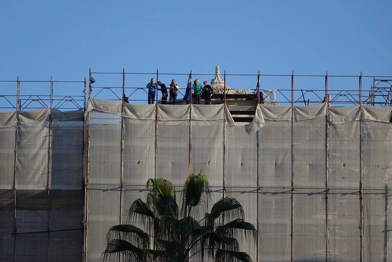 Taranto – Nuova protesta operai Isola Verde, sull’impalcatura esterna a palazzo degli uffici