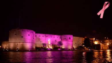 TARANTO: IL CASTELLO ARAGONESE S’ILLUMINA DI ROSA PER PROMUOVERE LA CAMPAGNA NAZIONALE DI SENSIBILIZZAZIONE “NASTRO ROSA”