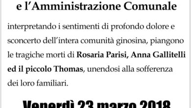 GINOSA – In conseguenza del terribile incidente mortale avvenuto nella mattinata di ieri, a Laterza, il comune di Ginosa ha…