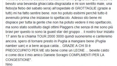 Si sarebbe dovuto esibire in piazza Piazza Papa Giovanni XXIII a Monteiasi per la serata organizzata dall’ANT ma è finito…