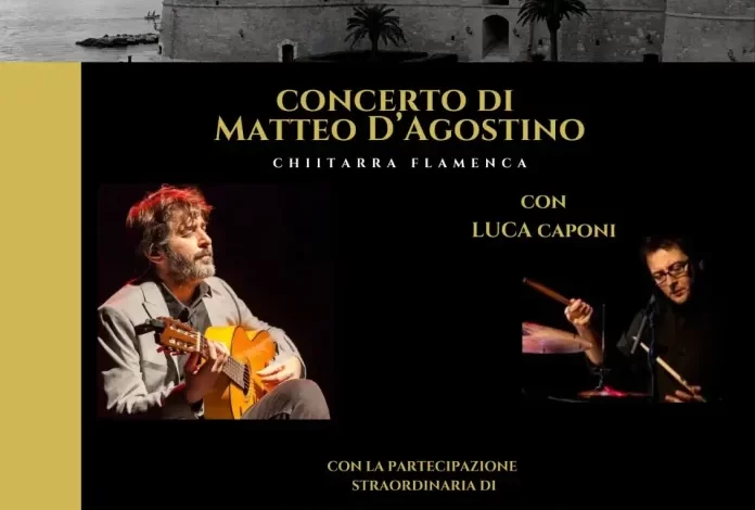 Taranto – Flamenco al Castello Aragonese. Sabato 21 gennaio 2023 alle ore 19 il Castello Aragonese di Taranto ospiterà, per gentile concessione della Marina Militare, il concerto per chitarra “Flamenco per Taranto” del maestro romano Matteo D’Agostino, che, con la sua inseparabile chitarra flamenca, presenterà otto brani di sua composizione, tratti dall’album ¡ Aquí Me Encuentro!.
