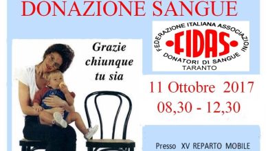 Taranto – 23^ edizione della Giornata donazione sangue.