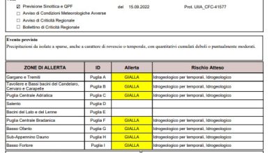 Puglia: allerta meteo da oggi fino alle 20 di questa sera