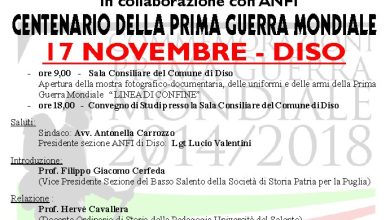 Nell’ambito delle iniziative in occasione delle celebrazioni del centenario della Prima Guerra Mondiale (2014-2018), l’Amministrazione Comunale di Diso, in sintonia…
