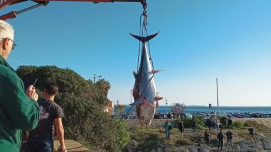 La foto-notizia: tonno da un quintale spiaggiato sugli scogli di Santa Caterina
