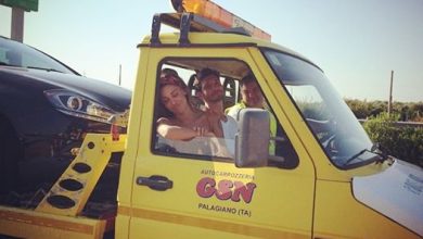 Belen Rodriguez soccorsa da un carroattrezzi a Taranto