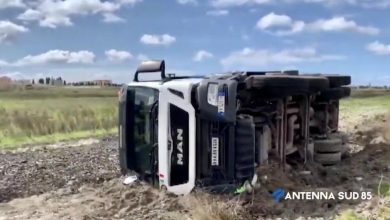 Taranto – Autocarro si ribalta, il conducente non è ferito