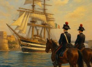 Un addio suggestivo all’alba con i Carabinieri a cavallo ha chiuso una settimana memorabile. Ha lasciato Taranto la nave scuola…