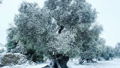 Lecce- SEGNALAZIONE/Una passeggiata sotto la neve tra gli ulivi imbiancati. LE FOTO spettacolari del tesoro della Puglia