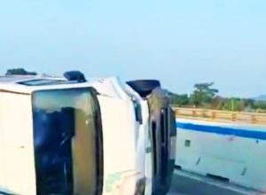 Paura sulla SS16: furgone si ribalta e auto in fiamme