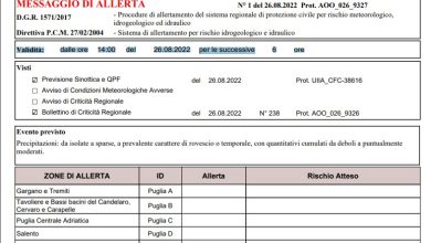 Puglia: maltempo dal pomeriggio e per le successive sei ore