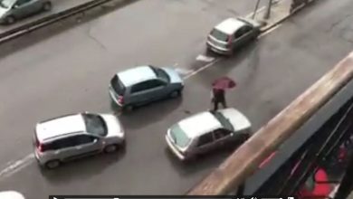 Taranto – Cittadino dirige il traffico sotto la pioggia. | VIDEO